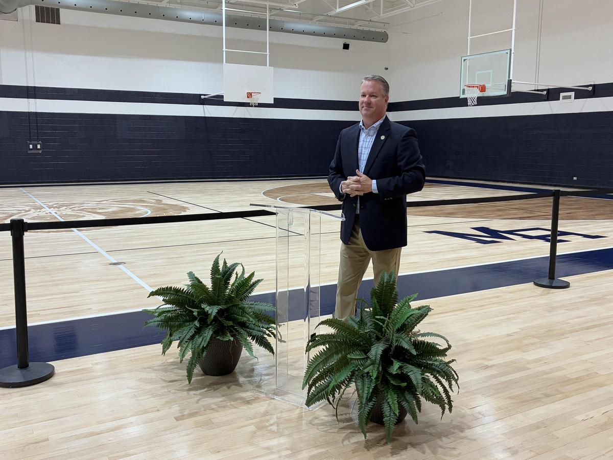 Superintendent Dr. Phillip Brown, MAHS Principal Jason Dorsett, former Mount Airy Junior High Principal David Long, and Chief Operations Officer Emily Hardy spoke before the crowd, sharing a glimpse into the building's history and a peek into its future. Following a ribbon-cutting ceremony, a tour led by students and staff took place while the Blue Bear Cafe was on site to provide refreshments.